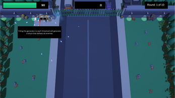 5) The generator will generate a shockwave at certain thresholds, wiping out all enemies in the area. Each threshold is indicated by a vertical notch on the generator energy bar indicator. When a total of 100 energy has been deposited, you win the round! You can choose to move on to the next round.